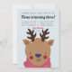 Brrr! Convites chiques para comemorações de aniversário de inverno para crianças exibem uma adorável rena vestida com um lindo cachecol rosa de inverno. "Venha se acalmar conosco" aparece no topo em marinho, em letras azuis, com seus detalhes de festas embaixo de uma legal mistura de caracteres azuis e cor-de-rosa.