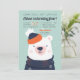 Brrr! Convites chiques para festas de aniversário de inverno para crianças apresentam um urso polar branco vestido com um chapéu e suéter de inverno fofo. "Venha se acalmar conosco" aparece no topo em marinho, em letras azuis, com seus detalhes de festas embaixo de uma legal mistura de marinhos e tons de laranja.