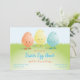 Um convite da caça do ovo da páscoa com uma disposição horizontal com três, sorrindo, caráteres do ovo da páscoa. Os ovos da páscoa amigáveis estão estando fora na grama verde. As palavras de todo o convite podem ser personalizadas.