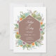 Este convite de casamento inspirado no deserto apresenta um belo arranjo de suculentos, cactos e flores e flores de cactos. Em uma matiz de terra, este convite é perfeito para o seu casamento no deserto de vô.
