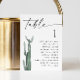 Ajude seus convidados a encontrar seus assentos em estilo com este quadro elegante de assentos inspirados no deserto. Apresentando cacto de aquarela macia e um roteiro moderno limpo, este design traz um novo olhar botânico para o seu decor de casamento. Perfeito para casamentos de vassoura, rústicos ou ao ar livre. Este gráfico combina uma estética natural com a organização prática. Personalize facilmente o número de mesas e nomes de convidados para ajustado do seu layout. Fazer excelente primeira impressão quando os convidados entram na sua recepção.