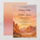 This design features a Canyon Desert wedding theme showcasing a portrait of rocky mountains with a sunset view on the background. Rustic boho vibes, earthy tones, and elegant calligraphy, it’s perfect for outdoor, southwest, or sunset-themed weddings This invitation can be easily edited with your wedding details.