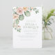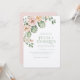 Convide seus amigos e família para o seu casamento no deserto com este belo convite que inclui cacto de aquarela e rosa rosa pálida. As cores utilizadas incluem: verde-sábio, rosa pálido e pêssego.