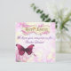 Um convite de jantar de Páscoa elegante e sofisticado, especialmente adequado para um jantar de adultos. O design é uma textura de papel vintage em amarelo pastel e rosa. Uma bela ilustração de uma borboleta roxa-marrom senta-se no canto inferior esquerdo. No topo, uma faixa de Feliz Páscoa com floreios elegantes e um único pássaro sentado na letra "y" saúda seu convidado. Personalize com os detalhes da sua festa.