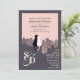 Monograma do convite para casamento temático, com o elemento felinos e a visão urbana. Design de cartum, apropriado para anúncios de casamento, noivados para casais que amam seus animais de estimação ou gatos em geral. Por favor, personalize as letras maiúsculas do monograma e outros textos.