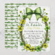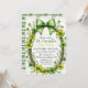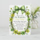 Um convite temático do dia de São Patrício com uma coroa de trevos e um laço decorativo sobre listras suaves. Este design é totalmente personalizável e a arte com padrão coordenado é impressa no verso.