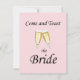 Venha brindar à Noiva com taças de champanhe e todas as informações para o seu evento no verso deste convite cor-de-rosa lindo.