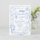 Este convite de despedida de solteira desenhado à mão com capricho apresenta um estilo praiano divertido e desenhado à mão, vaca/mulher-peixe com drinque, rabiscos temáticos do faroeste. Os rabiscos intrincados, caracterizados por linhas onduladas e sinuosas, adicionam um toque de singularidade e estilo pessoal ao seu convite. Frente e verso, com o itinerário do fim de semana no verso. Este modelo inclui texto e paleta de cores totalmente editáveis. Explore nossos itens coordenados disponíveis na loja para um visual coeso e elegante. (c) Ever After Wedding