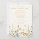 Este design combina elegância e capricho, combinando texto moderno minimalista com uma fileira de delicadas flores silvestres em aquarela perfeitas para casamentos inspirados em boho.
