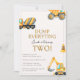 Celebre o grande dia do seu pequeno construtor com este adorável convite de aniversário com tema de construção! Apresentando caminhões de lixeiras, misturadores de cimento e escavadoras, ao estilo aquarela, em tons alegres de laranja e amarelo, este design é perfeito para uma criança que vira dois. O texto é personalizável para ajustado do nome do seu filho, data da festa, hora e local. Ideal para crianças que amam a construção e para o memorável segundo aniversário!