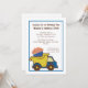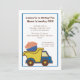 Caminhão azul e amarelo com um cupcake. Personalizar para o aniversário de qualquer criança. Altere o texto para atender às suas necessidades.