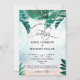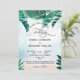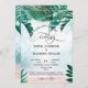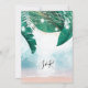 Planejando um casamento no destino de praia de ilha tropical à beira-mar? Convide seus convidados com este lindo convite com ilustração de jarro de luz com luzes de fada cintilantes e folhas tropicais de palmeira na areia e fundo do mar