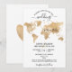 Convites Destino de Casamento Mapa Mundial Dourado Coração