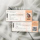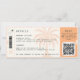 Uma design de tendência de um convite de casamento de passagem de avião com um tema de destino tropical (Havaí etc.) com uma ilustração estilizada de uma palmeira simples, encantará casais e convidados, ansiosos pelo grande dia. Modelo para obter uma imagem do casal feliz e um código QR para o cartão de resposta.