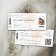 Uma design de tendência de um convite de casamento de passagem de avião com um tema de destino tropical (Havaí etc.) com uma ilustração estilizada de uma palmeira simples, encantará casais e convidados, ansiosos pelo grande dia. Modelo para obter uma imagem do casal feliz e um código QR para o cartão de resposta.