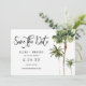 Cartão de anúncio de casamento salve a data com palmeiras tropicais. Palmeiras e casal de leopardos no verso.