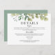 Cartão de Informações de Hospedagem com Detalhes de Casamento com Vegetação em Aquarela Elegante.