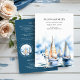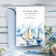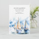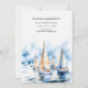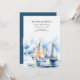 Tudo no convite de um casamento com todos os detalhes, site e código qr no verso. Esta design apresenta uma bela pintura aquosa de veleiros navegando graciosamente num mar calmo sob um céu de verão, criando um ambiente sereno e romântico. A paleta de cor suave de blues e cremes evoca um senso de tranquilidade e sofisticação, perfeito para uma celebração costeira na beira-mar, no iate clube ou outro tema náutico. Por favor, navegue na Coleção de Casamentos de Navegação Costeira para coordenar itens ou me mande mensagens para adicionar quaisquer modelos adicionais de que você precise.