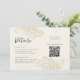 Com folhas de ouro pintadas à mão e flores, este cartão de detalhes do casamento tem um design com tipografia personalizável em preto e ouro em um fundo de textura de papel creme.