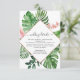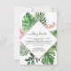 Folhas de Palma Verde Tropical e Flores Rosa Bege em Aquarela com Folha de Ouro Rosa Falso Geométrico - inclui bela e elegante tipografia de roteiro com flores botânicas tropicais modernas e folhagens para a celebração especial do dia do casamento.