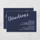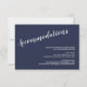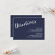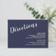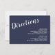 Marinho de Script Moderno Blue Wedding Invitation Suite: Wedding Directions and Acomodations Card com título em letra branca de script moderno com detalhes em letra branca de sans serif moderna em fundo azul marinho.