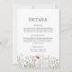 Apresentando o Cartão de Alojamento de Detalhes de Casamento de Boho Wildflower, a adição perfeita ao seu convite de casamento. Este cartão fornece todas as informações essenciais para os seus convidados, incluindo detalhes de casamento, opções de alojamento e um link de site para mais informações. A frente do cartão apresenta flores silvestres de aquarela, papoilas, ervas e margaridas em um arranjo semelhante a prados. O Cartão de Alojamento de Detalhes de Casamento de Boho Wildflower é essencial para a sua papelaria de casamento, fornecendo uma visão geral abrangente dos seus planos de casamento. Ele não só ajuda seus convidados a se manter informados, como também adiciona um toque de elegância e coesão ao seu pacote de convites. Certifique-se de que os seus convidados tenham todas as informações necessárias com o nosso Cartão de Alojamento de Detalhes de Casamento Boho Wildflower. Peça o seu hoje e crie uma experiência perfeita e memorável para seus convidados. Localizar itens correspondentes na Coleção de Prados de Flor Selvagem Colorida.