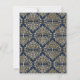 © Designs socialitas. Nossa elegante placa de gabinete de detalhes de eventos tem belos damascos dourados sobre fundo azul marinho e um design florescente. Emparelhe esta carta elegante com o convite de casamento correspondente. Entre em contato com Designs Socialite se quiser ter outros produtos correspondentes a esta coleção.