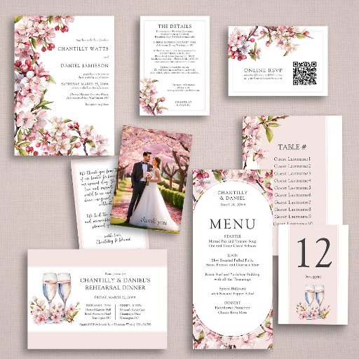 Convites Detalhes do Casamento e Site de Cherry Blossom