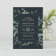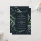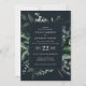 Convite de casamento floral de cor azul-marinho-branca-azul-curva e cartão de detalhes. Com belos marinhos, , verde-preto e sage, folhagem, erva e eucalipto, convite e cartão detalhado. Este convite de casamento moderno certamente define o estilo para o seu grande dia.