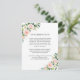 Lindos buquês florais cor-de-rosa-pincelado e branco destacam cantos opostos neste cartão de informações de casamento moderno usado para fornecer detalhes aos seus convidados de casamento, acomodações de hotel, seu site de casamento ou outras informações úteis em torno de seu casamento. Personalize o texto de exemplo mostrado no modelo de texto com os detalhes desejados. Estes cartões podem ser enviados como um recinto com seus convites de casamento. Um pacote de produtos de papelaria correspondentes está disponível nesta design para coordenar seu casamento ou evento em estilo bonito.