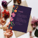Faça seus detalhes de casamento brilharem com nosso "Convite para detalhes de casamento da Floral Mexicana Roxa" contra um pano de fundo roxo ousado. Este convite incorpora o espírito de celebração com flores pintadas manualmente a aquarela em tons vibrantes de laranja, vermelho e roxo. Contra a impressionante canvas escura, seu casamento específico se destaca elegantemente em textos escuros sofisticados, criando um contraste cativante. A design exude uma vibração festiva e na moda, dando o tom para uma comemoração vibrante e alegre.