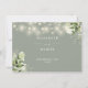 Um cartão de informações de detalhes de casamento verde sálvia com luzes de corda florais elegantes personalizado com seus detalhes especiais em tipografia estilosa e seus nomes e data de casamento no verso. Projetado por Thisisnotme