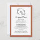 Recepção de casamento, acomodações de hotel e detalhes do site com código QR (ou excluir campos se não necessário). Design simples, elegante e moderno com uma borda laranja queimada, suas iniciais monográficas e seu texto de convite. No verso está o código QR. Este design foi criado de uma coroa foliar cortada à mão por design de uma moldura monográfica contemporânea com uma ampersand caligráfica. Concebido por artista e designer com licença internacional, Audrey Jeanne Roberts, copyright.
