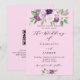 Um fundo rosa. Decorado com flores e folhagens roxas em aquarela. Personalize e adicione seus nomes e detalhes da festa.