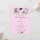 Um fundo cor-de-rosa. Decorado com flores roxas em aquarela e folhagens. Personalize e adicione seus nomes e detalhes da festa.