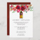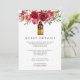 Romântica para convidados florais com cartões de visita com uma lanterna e rosas e peões vermelhos, roxos, cor-de-rosa e arrojados.