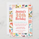 Personalize um convite para aniversário de 30 anos moderno com os detalhes do seu partido. Colorida, na moda, urbana, tipo Design plana. A Frente tem os detalhes do convite de aniversário. O reverso tem o design moderno impresso maior. Edite facilmente o nome, a idade e os detalhes do convite de acordo com as suas necessidades. Consulte nossa coleção para suprimentos de festas correspondentes.