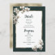 Este lindo convite de casamento apresenta um adorável programa de detalhes de casamento em aquarela branca, verde escuro e dourado com orquídea tropical elegante, perfeito para qualquer cerimônia sofisticada e elegante. Este floral tropical elegante é perfeito para o casal luxuoso e sofisticado. Personalize este design com sua mensagem e informações personalizadas. Todos os desenhos são impressos.
