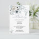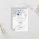 spray aéreo de flores pálidas e poeirentas de anêmona azul e flores de pérola de marfim creme melhoradas com folhagem azul pastel que adornam o topo. Um pequeno bud azul empoeirado no fundo. A palavra 'detalhes' escrita em uma caligrafia de script. Avise seus convidados da cidade sobre reservas de quarto e detalhes. Design criado para o BarefootBride™ por © WhimsicalArtwork™ Personalize texto, estilo de letra, cor e tamanho. Criamos que esta modelo é para facilitar a personalização com suas próprias informações. Esta é parte do nosso Pacote de Papelaria Dusty Blue Foliage, Peonies de Marfim, com casamento, chá de fraldas e outros artigos de papelaria.