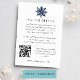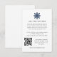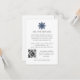Criei este modelo de cartão de detalhes para casamento com tema de neve para combinar com a nossa coleção Casamento de Inverno com Flocos de Neve Elegantes. Ele apresenta um pequeno floco de neve em estilo minimalista na cor azul marinho com detalhes de acomodação de texto personalizado e código QR.