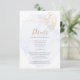 Lave azul-aquarela pálida e um rosa dourado solteiro no topo - A palavra 'detalhes' escrita em uma caligrafia de script. Avise seus convidados da cidade sobre reservas de quarto e detalhes. Design criado para o BarefootBride™ por © WhimsicalArtwork™ Personalize texto, estilo de letra, cor e tamanho. Criamos que esta modelo é para facilitar a personalização com suas próprias informações. Esta é parte de uma suíte de artigos de casamento com casamento, chá de fraldas e outros artigos de papelaria.