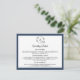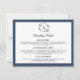 PLACA DE ENCERRAMENTO DE DETALHES DE CASAMENTO DE PEQUENO TAMANHO | design de cartão de casamento simples, elegante e moderno com uma fronteira azul marinho clássica, as suas iniciais monográficas e o seu texto de convite. Recepção de casamento, acomodações de hotel e detalhes do site com código QR (ou excluir campos se não necessário). Criada da coroa foliar foliar desenhada à mão e concebida para uma moldura monográfica contemporânea com uma ampersand caligráfica. Concebido por artista e designer com licença internacional, Audrey Jeanne Roberts, copyright.