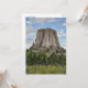 Este postal apresenta um retrato de aquarela do Monumento Nacional da Torre Devils em Wyoming.