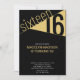 Celebre seu dia especial com este elegante e moderno convite de aniversário 16. Este design apresenta um layout simples em uma combinação de preto clássico e ouro.