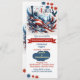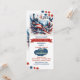 Uma diversão, comida e fogos de artifício elegantes e únicos convite para o 'PARTIDO COOKOUT de 4 de julho' para os próximos e queridos. A design apresenta cores vermelha, branca e azul e os elementos do Dia da Independência Americana. A ilustração tem águia voadora, bandeira americana, Estátua da Liberdade, estrelas e faixas em vermelho, branco e azul. O lado inverso tem uma ilustração correspondente. O texto pode ser facilmente personalizado com suas próprias palavras.