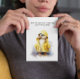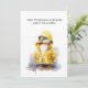 patinho giro vestindo uma capa de chuva amarela. Quando a vida te dá um dia chuvoso, brinque nas poças. Cartão motivacional com um texto personalizável
