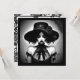 Convites de Halloween personalizados. Mulher gótica assustadora de vestido preto e chapéu preto com uma arte rosa IA negra. conteúdo generativo
