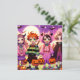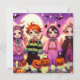 Convites para festa de Halloween para festa infantil. Pequenas crianças de anime em fantasias.