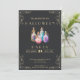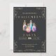 Este convite para o Halloween é uma visão comovente, com um fundo preto adornado com elegantes bordas de canto de ouro e escrevendo. O contraste entre o pano de fundo escuro e os sotaques dourados em xisto soma um toque de sofisticação ao design místico. No centro do convite estão quatro garrafas coloridas de poção ou de feitiço, cada uma enchida com um líquido encantador de matiz diferente. Essas garrafas acrescentam um elemento caprichoso e mágico ao tema geral, perfeito para uma festa de Halloween cheia de feitiços e poções. O esquema de cores preto e dourado do convite melhora o tema assustador, mas na moda, criando um contraste visualmente impressionante que certamente atrai a atenção de seus convidados. O verso do convite também é negro, mantendo a estética elegante e coesa. Quer você esteja planejando uma reunião com bruxas ou uma bola mística de mascarada, este convite define o tom perfeito para uma noite de encantamento e entusiasmo. Envie estes convites e convide seus convidados a se juntar a você para uma comemoração do Dia das Bruxas que certamente será a ortografia.