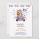 Celebre o seu marco com o nosso Convite de Aniversário para o Dia da Independência das Crianças em 4 de julho! Com animais cártaros adoráveis cavalgando em um carro, rodeados por fogos de artifício festivos e balões, este convite está explodindo com espírito patriótico em cores vermelha, branca e azul. Perfeito para uma dupla comemoração de um 5 e Dia da Independência, este design alegre irá deleitar crianças e pais. Personalize os detalhes para criar um convite memorável para seu evento especial, e prepare-se para uma festa cheia de diversão que honre tanto o grande dia do seu filho quanto o espírito do 4 de julho!